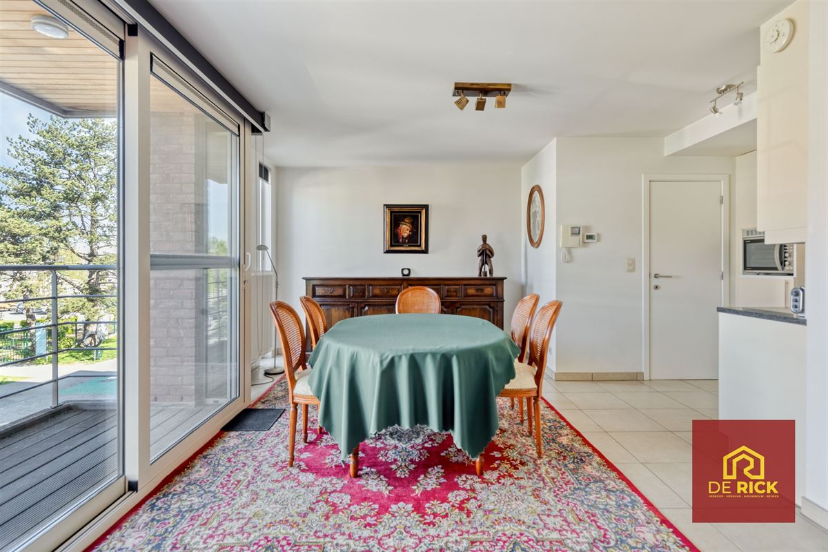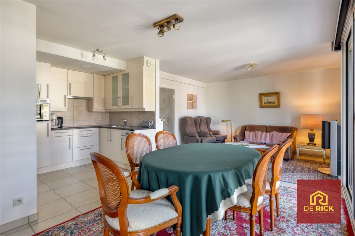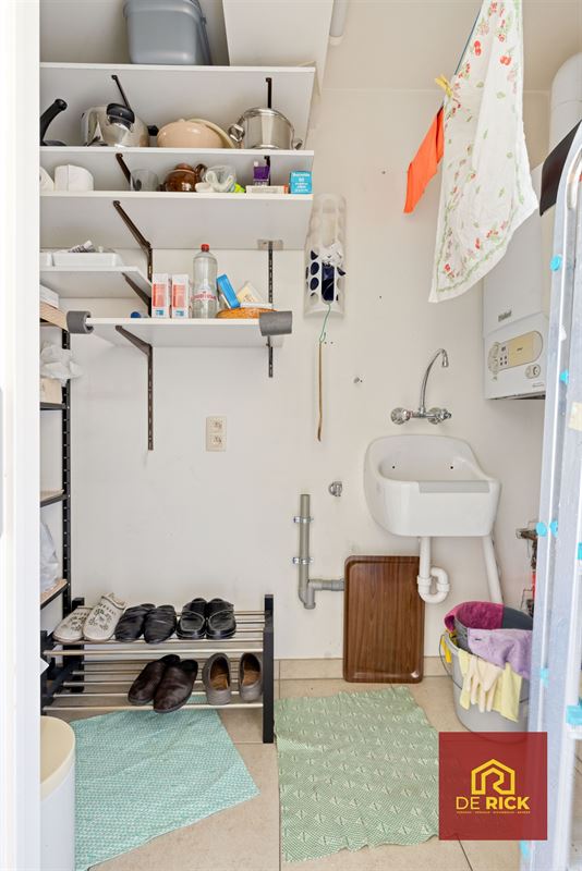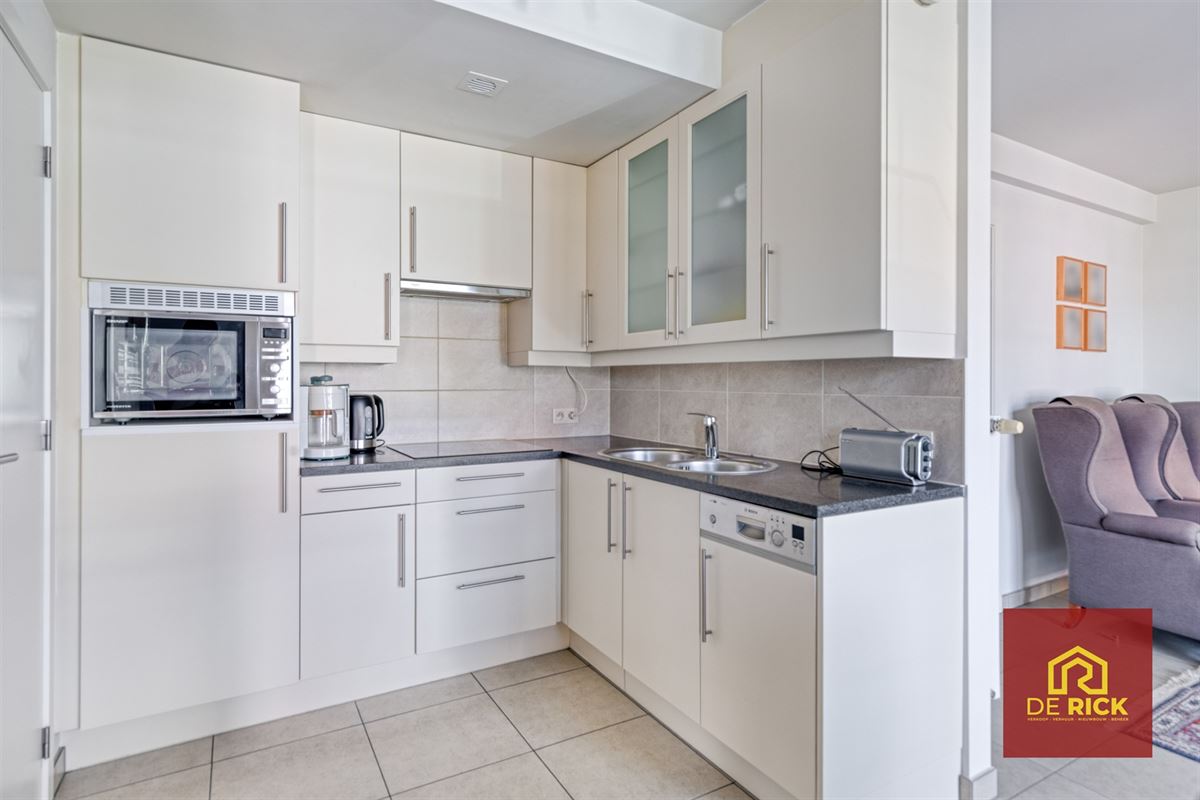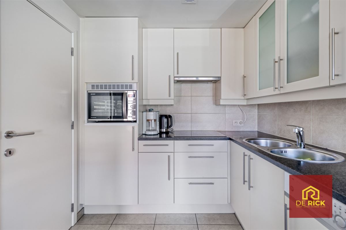 Het appartement is gelegen op de tweede verdieping en omvat een inkomhal, een lichtrijke woonkamer met eetruimte en een volledig uitgeruste open keuken, aangevuld met een praktische berging met extra spoelbak.