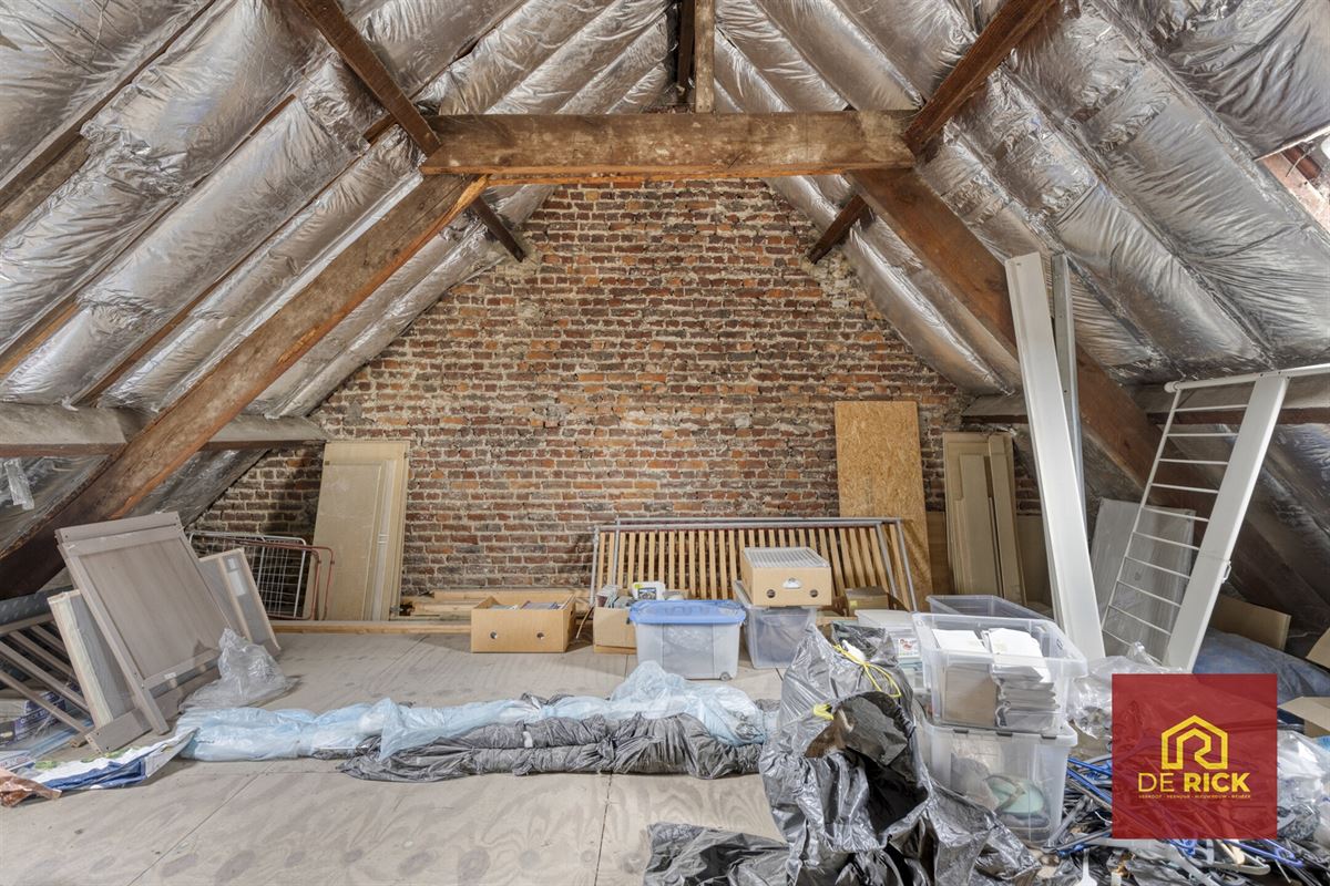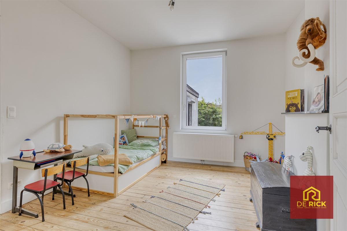 De woning beschikt over drie ruime slaapkamers, twee op de eertse verdieping en eentje op de tweede verdieping. Op de tweede verdieping is er een nog een kamer die nu dienst doet als zolderruimte maar waar perfect een bureau of extra kamer (kamer n°4) kan gemaakt worden, en de geïsoleerde zolder die te bereiken is met een vaste trap is ook klaar om verder afgewerkt te worden en dienst te doen als kamer n°5. De badkamer is modern ingericht en biedt zowel een inloopdouche als een stijlvolle wastafel, er is ook nog ruimte voor het installeren van een ligbad. De woning is ook bijna volledig onderkelderd.