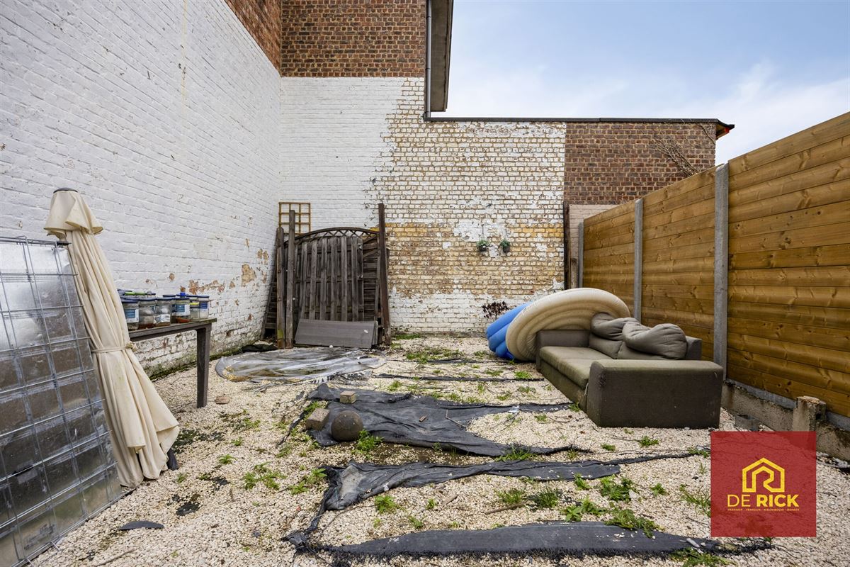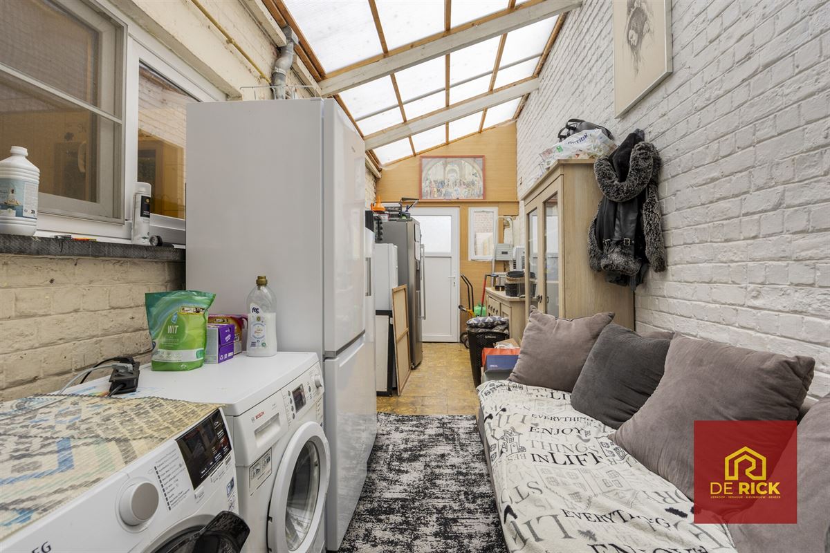 Deze stadswoning is zeer gunstig gelegen, op wandelafstand van het centrum, scholen, slager, supermarkt,.. Niettegenstaande de rustige ligging is de aansluiting met de autosnelweg niet veraf. Via de inkomhal kom je in de leefruimte; aansluitend geeft de eetplaats toegang tot de keuken en achtergelegen badkamer (met douche, toilet en wastafel). De veranda geeft uit op de gezellige stadstuin. Op de eerste verdieping zijn er 2 ruime slaapkamers en via een vaste trap heb je toegang tot een derde ruime slaapkamer. Het dak werd recent vernieuwd met een velux-raam