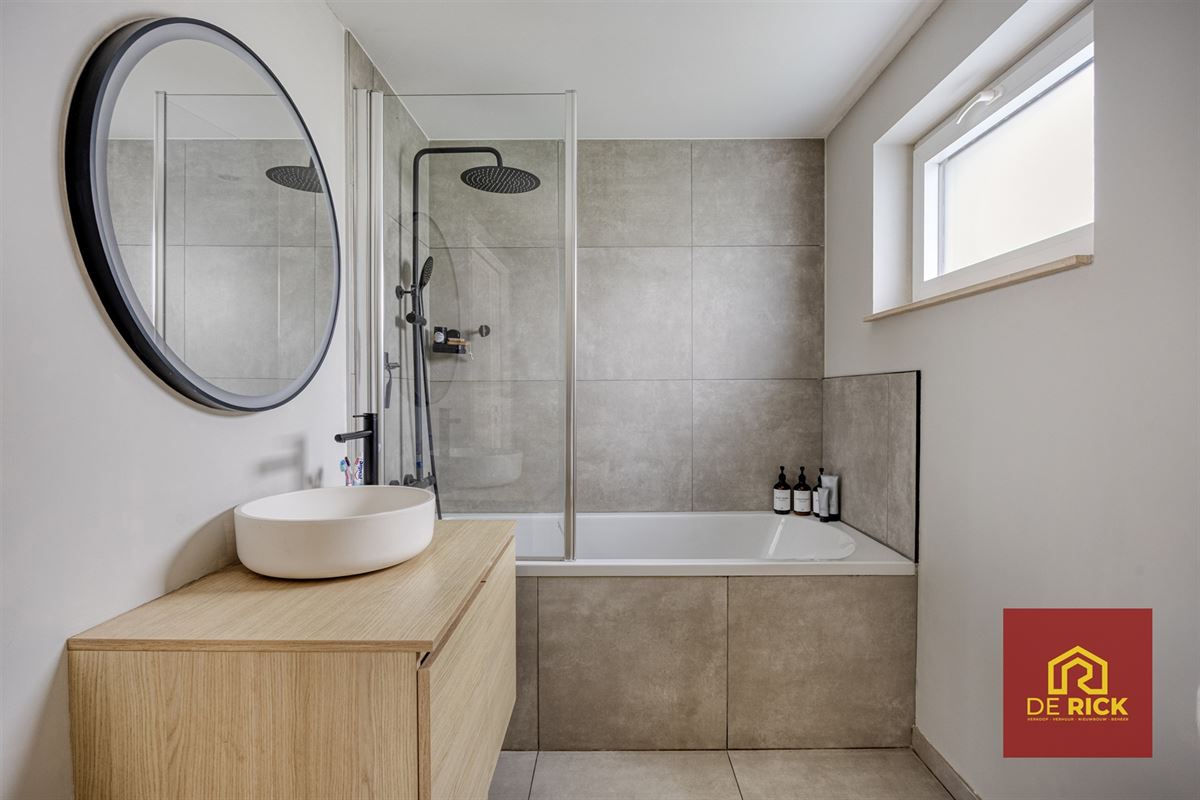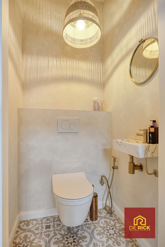 Op het gelijkvloers bevinden zich bovendien een modern afgewerkte badkamer, een afzonderlijk toilet met spoelbak en een praktische berging.
