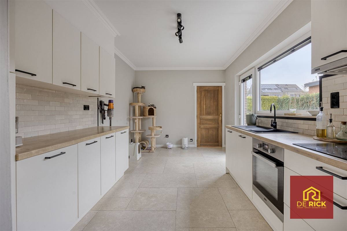 Aansluitend bevindt zich een volledig ingerichte keuken met duurzame en stijlvolle materialen.