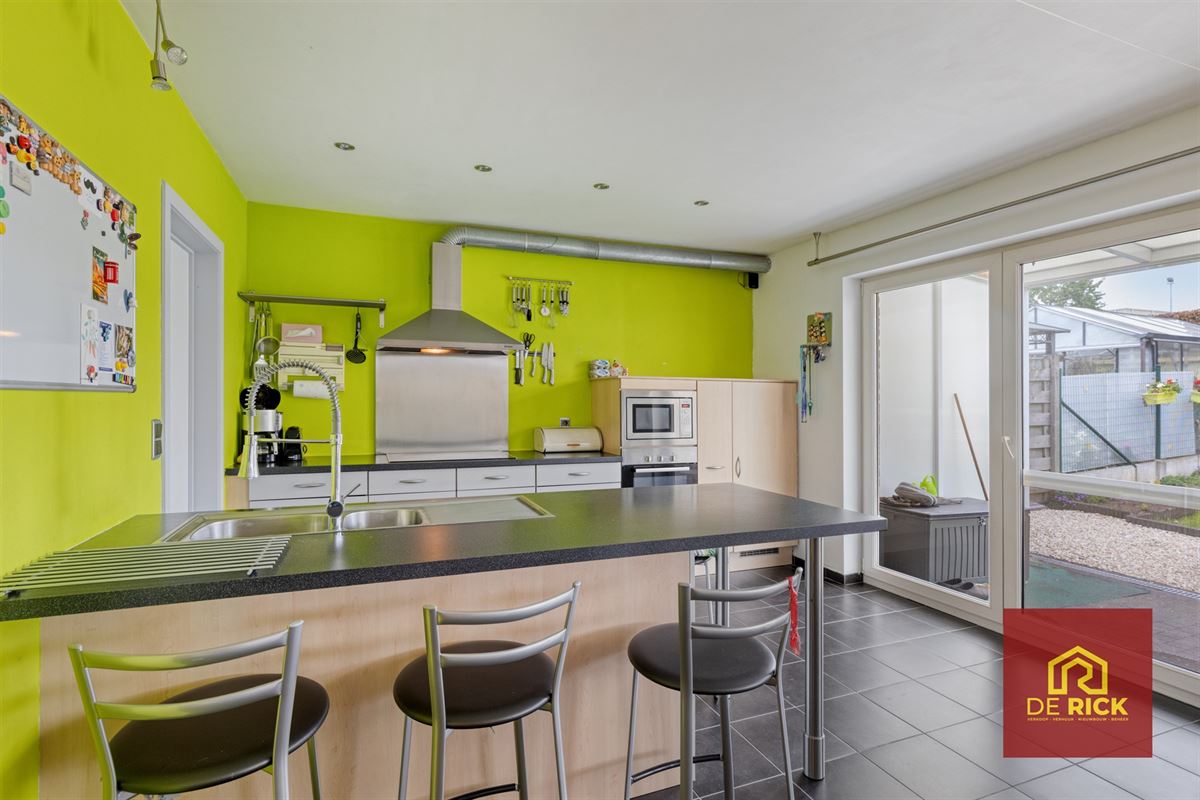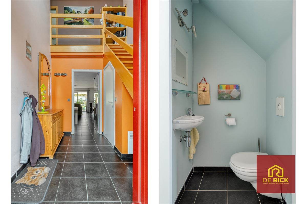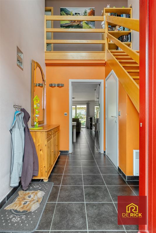 Via de inkomhal komen we in de ruime living met open keuken met zicht op terras en tuin. Aan de straatkant bevindt zich ook een praktische bureauruimte, eventueel slaapkamer.