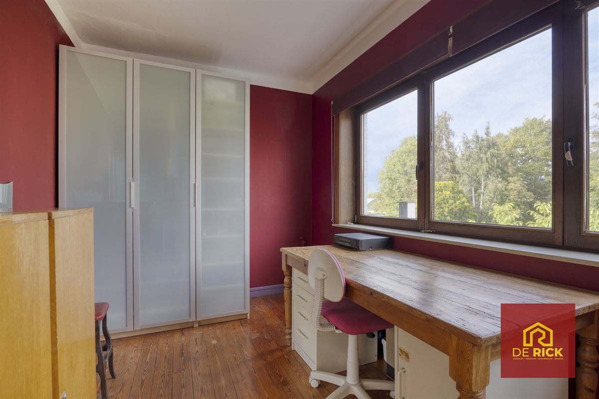 Op het gelijkvloers vindt u een ruime inkomhal, een woonkamer met bijzonder veel lichtinval, een keuken, een apart toilet en een ruime bureau. Op de eerste verdieping zijn er vier slaapkamer, een badkamer en een bureau/dressing. Verder is er een ruime, droge kelder.
