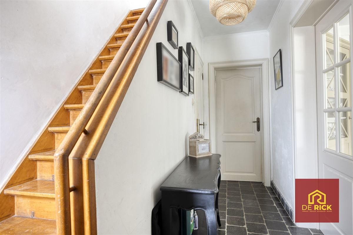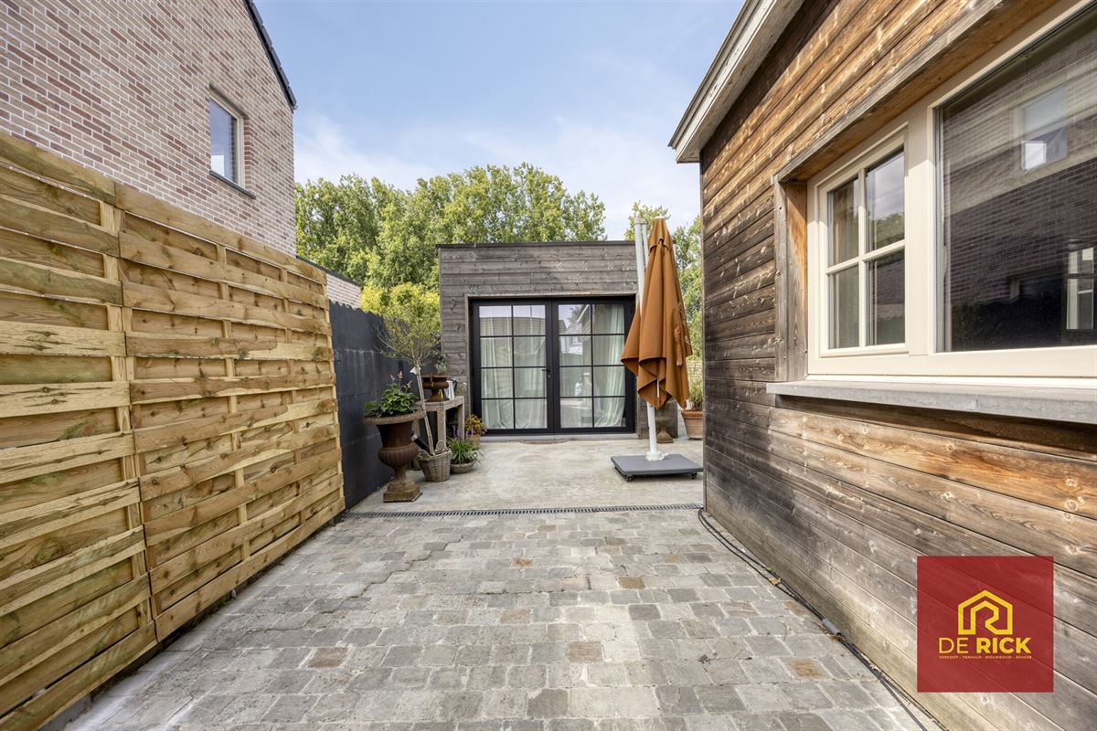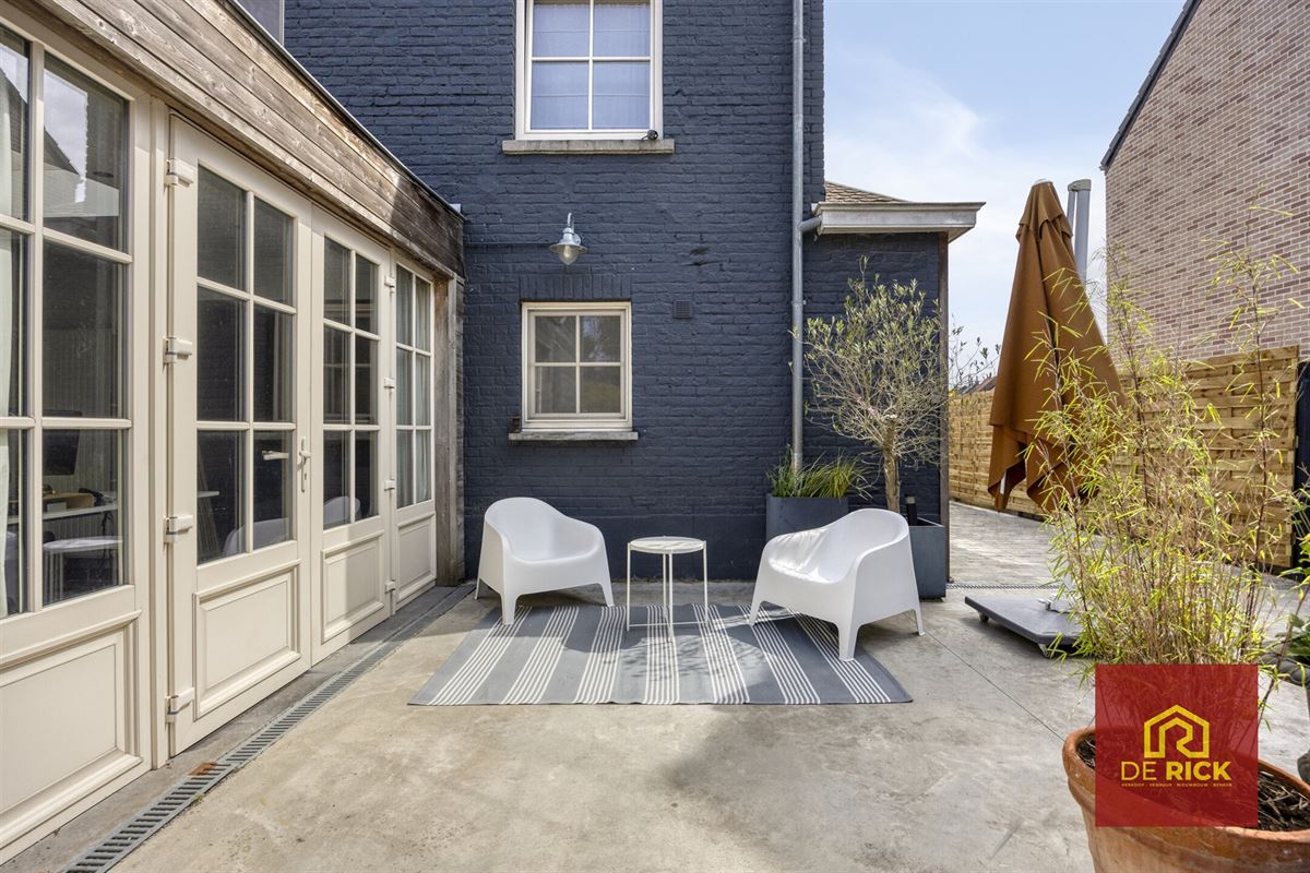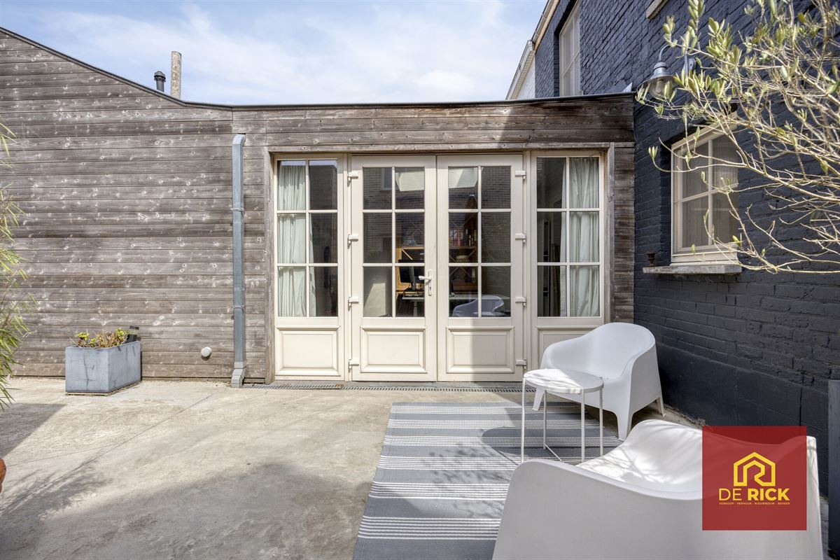De hoofdwoning is voorzien van een inkomhal, een ruime en lichtrijke woonkamer met aansluitend een open, volledig ingerichte keuken die gebouwd is met kwaliteitsvolle materialen, een bureau met grote raampartijen en een wasruimte/berging die ook voorzien is van een douche. Op de eerste verdieping zijn er twee slaapkamers en een badkamer met bad. De geïsoleerde zolder werd volledig ingericht tot een luxe slaapkamer.