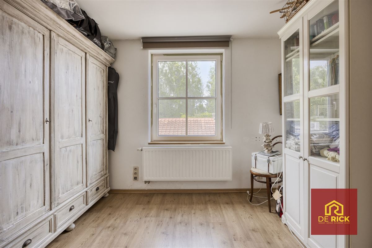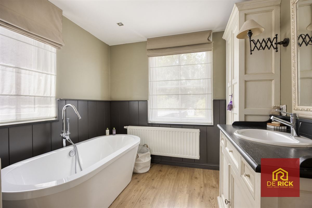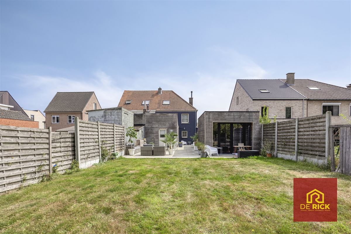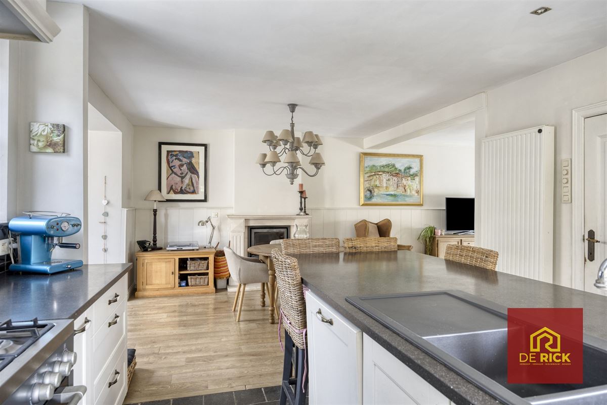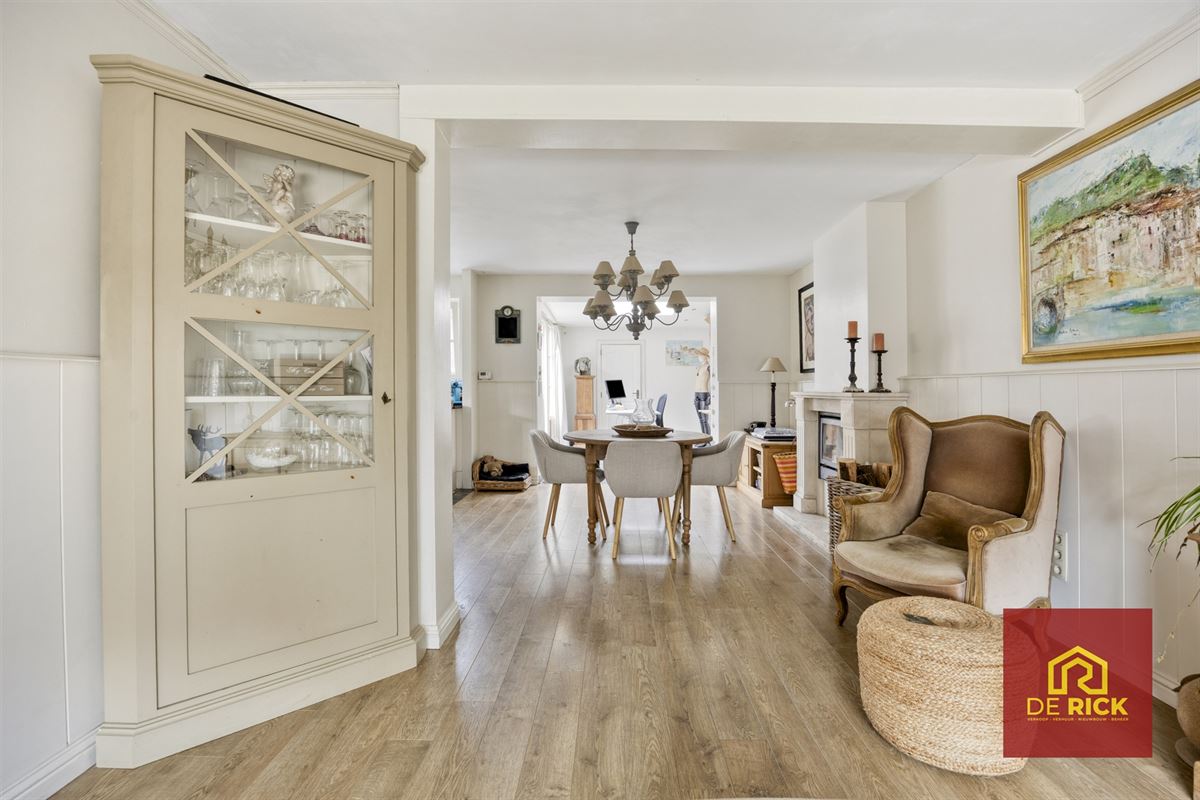 De hoofdwoning is voorzien van een inkomhal, een ruime en lichtrijke woonkamer met aansluitend een open, volledig ingerichte keuken die gebouwd is met kwaliteitsvolle materialen, een bureau met grote raampartijen en een wasruimte/berging die ook voorzien is van een douche. Op de eerste verdieping zijn er twee slaapkamers en een badkamer met bad. De geïsoleerde zolder werd volledig ingericht tot een luxe slaapkamer.