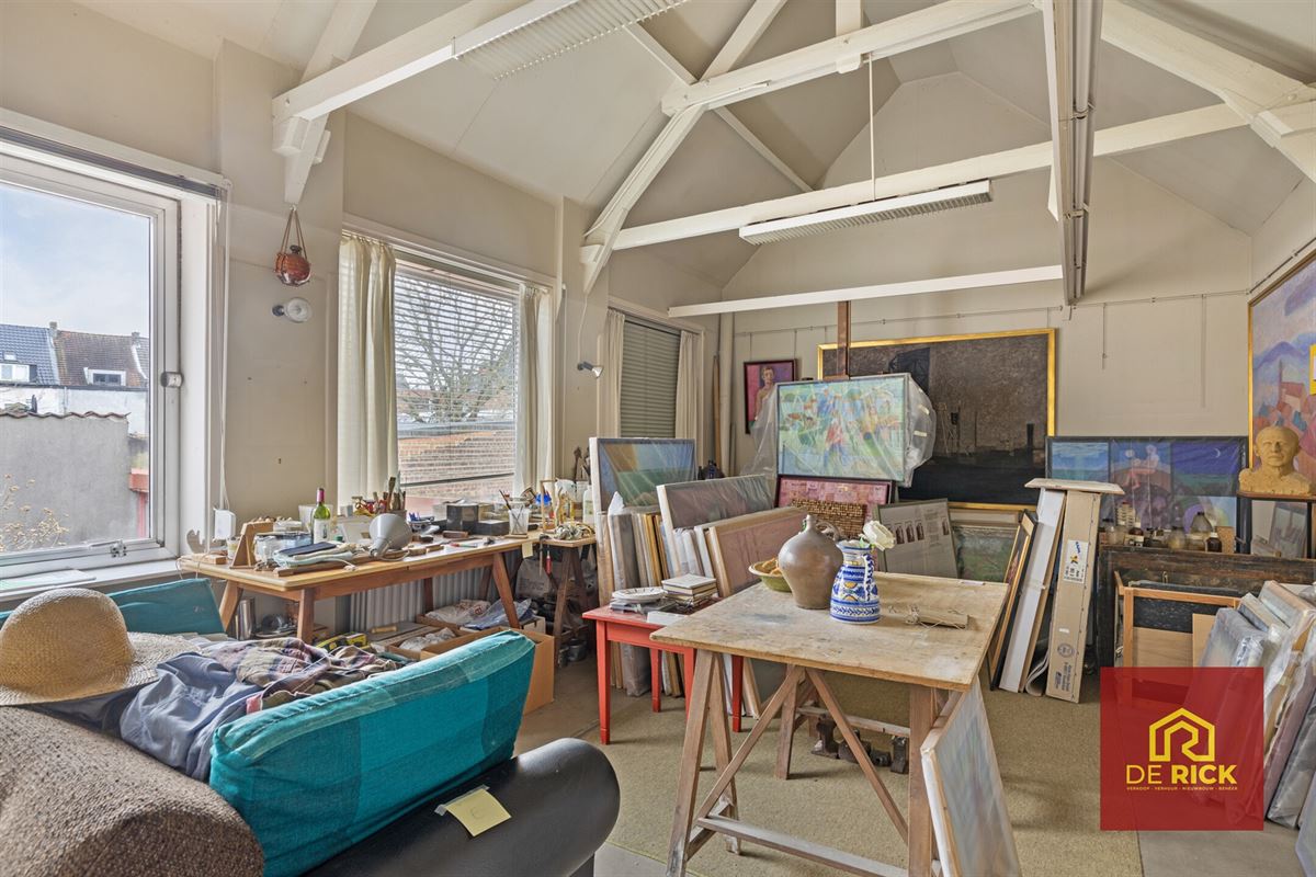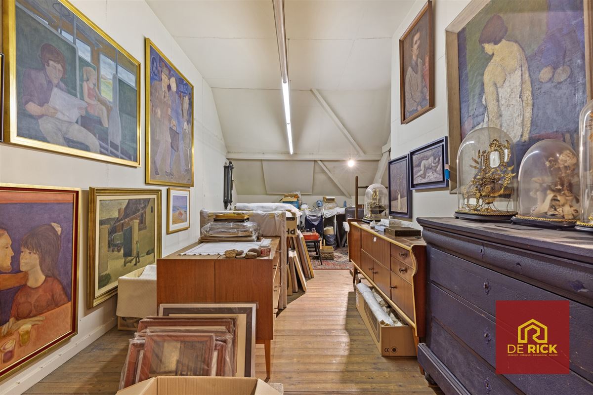 De woning ademt kunst uit. Op het gelijkvloers bevinden zich naast de badkamer en keuken, meerdere ruimtes, die dienst doen als salon, eetkamer, atelier..