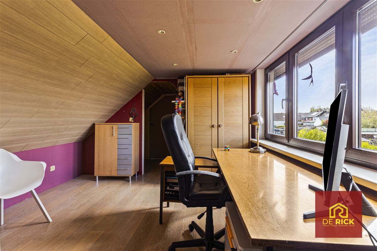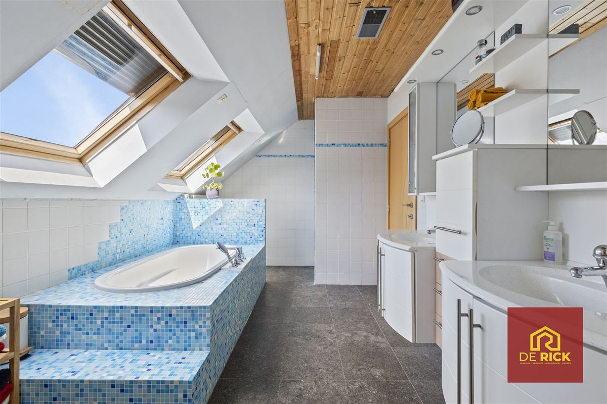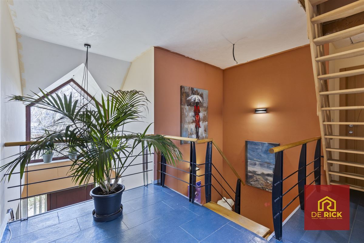 Op de verdiepingen bevinden zich 5 slaapkamers. Een ervan doet dienst als bureau. De badkamer heeft bad, douche, dubbele lavabo en toilet. Een praktische dressing maakt het geheel compleet.