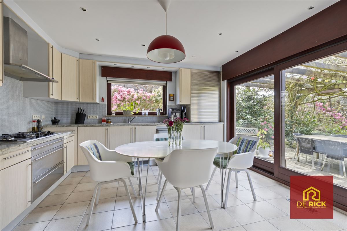 De aangrenzende keuken is voorzien van alle apparatuur en geeft via de wasplaats toegang tot de dubbele garage.