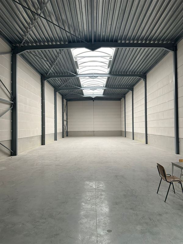 De opslagruimte beschikt over een automatische sectionale poort (4m breed x 4,5m hoog), een glaspartij die ideaal is voor het inrichten van kantoorruimte, een lichtstraat en een vrije hoogte van 6m.