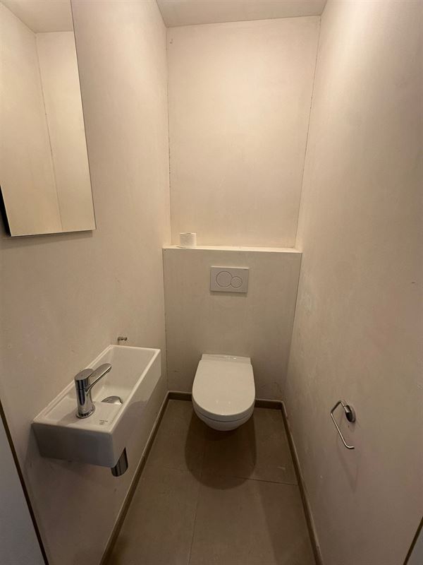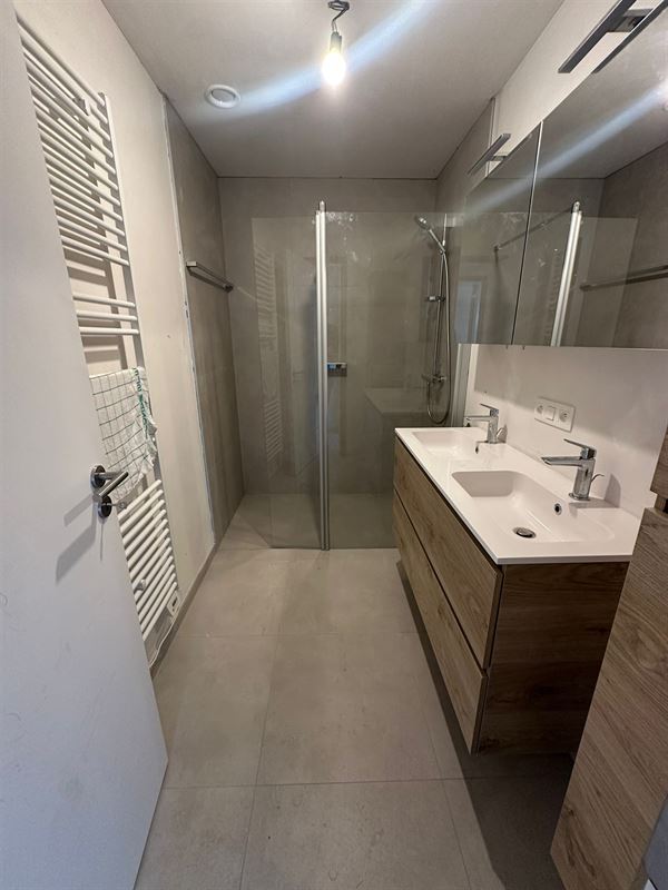 De badkamer is voorzien van een dubbele wastafel, inloopdouche en handdoekverwarmer. Verder is er een afzonderlijk toilet met lavabo en een technische berging.
