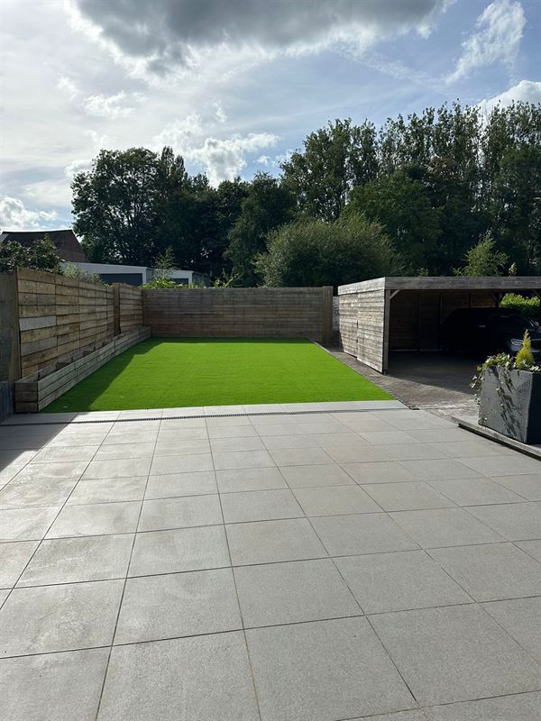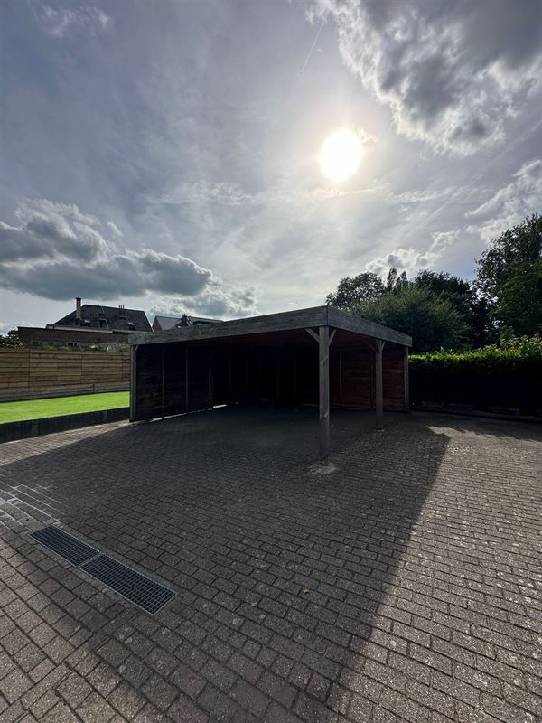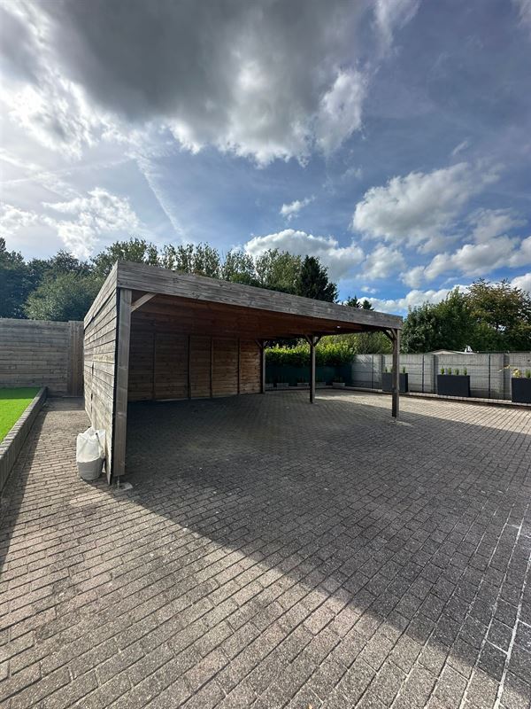 Buiten vindt u een ruim terras met een aangrenzend deel tuin, een carport voor twee wagens, en een grote parkeerplaats. Het terrein is volledig omheind en kan worden afgesloten met een hek voor extra veiligheid.