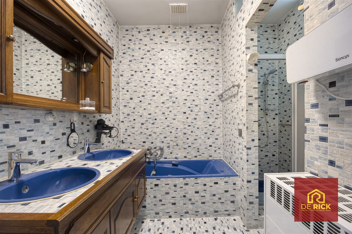 De woning beschikt over twee ruime slaapkamers met potentieel voor uitbreiding, afhankelijk van uw noden. De badkamer is netjes afgewerkt met een ligbad, dubbele wastafel en voldoende opbergruimte.