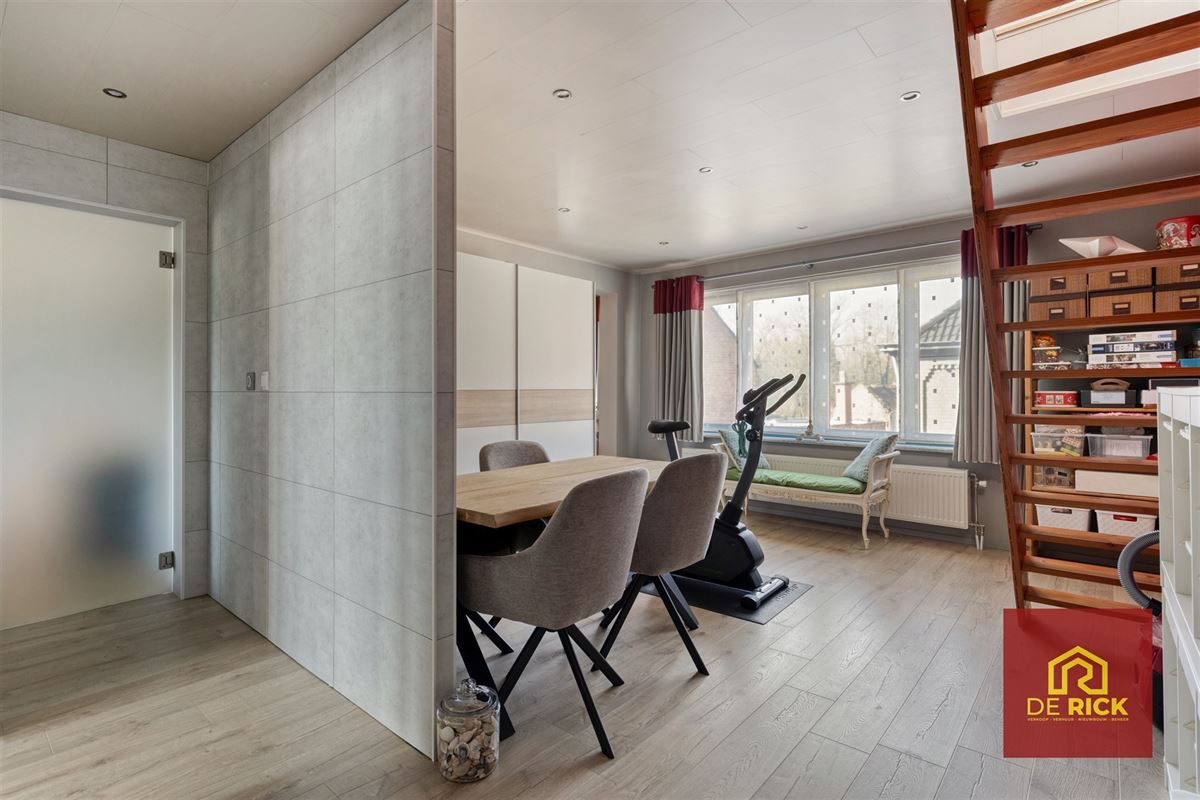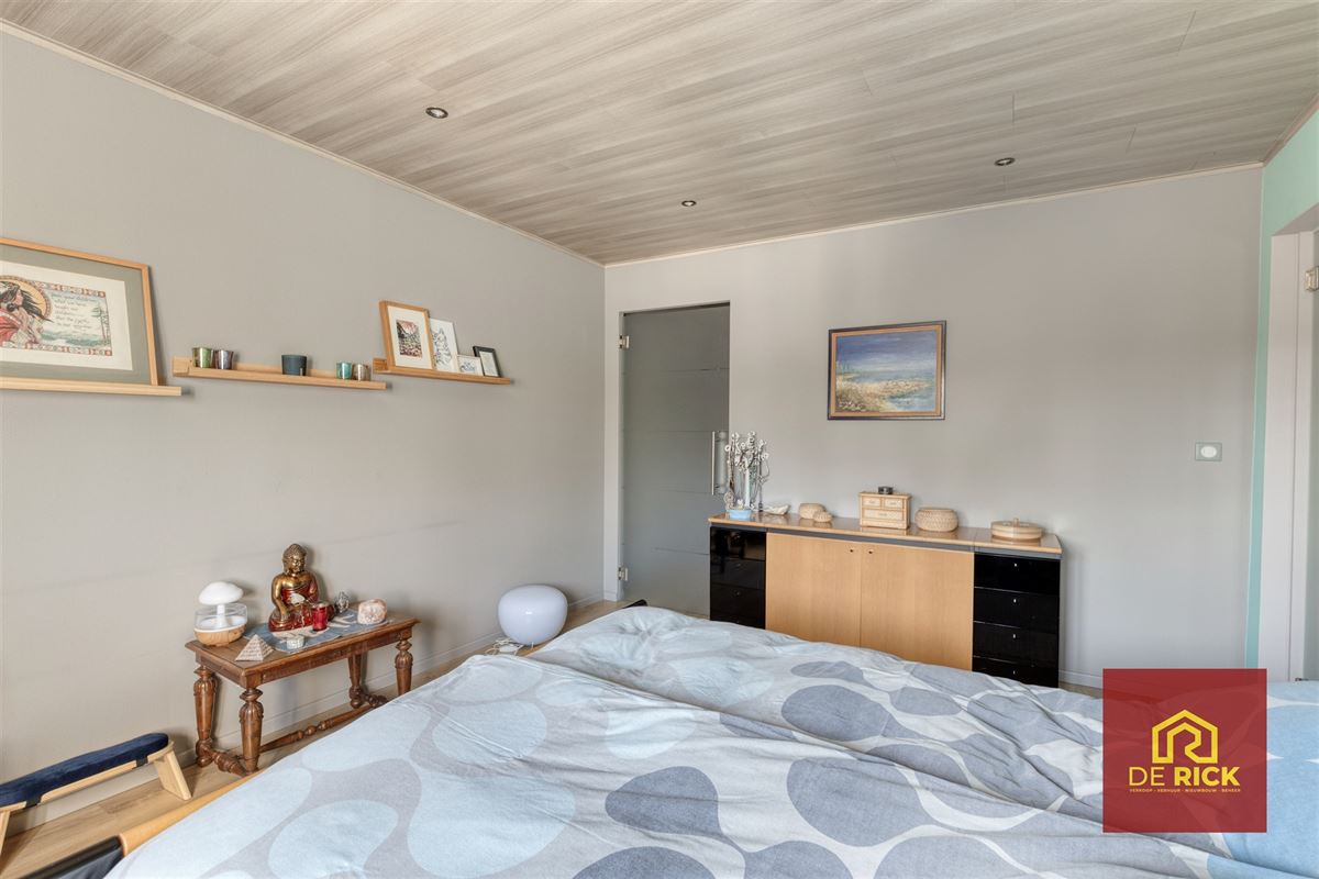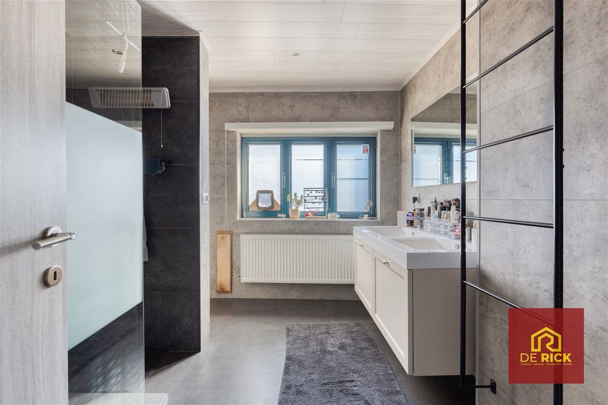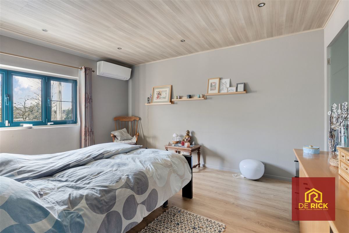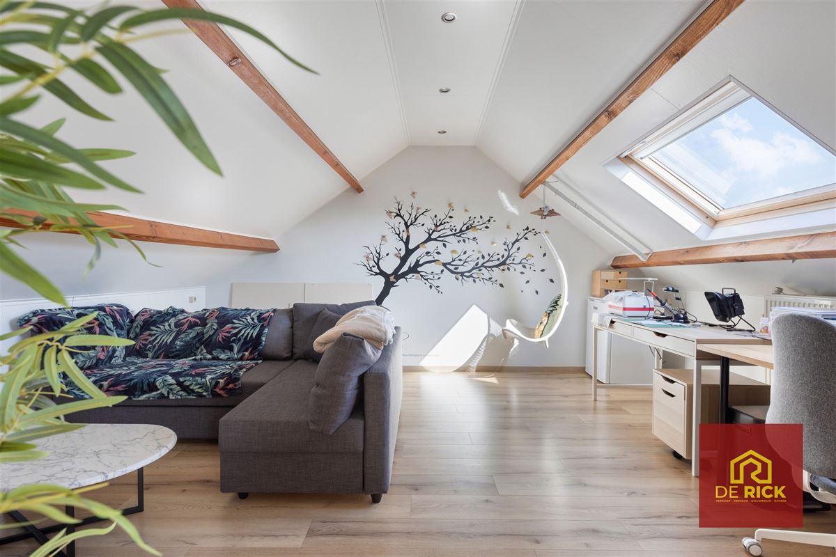 Op de eerste verdieping vindt u een ruime slaapkamer met dressing en een vernieuwde badkamer, voorzien van een inloopdouche, toilet en dubbele lavabo. Ook is er een bureauplek voorzien. De zolder is volledig ingericht als slaapkamer.