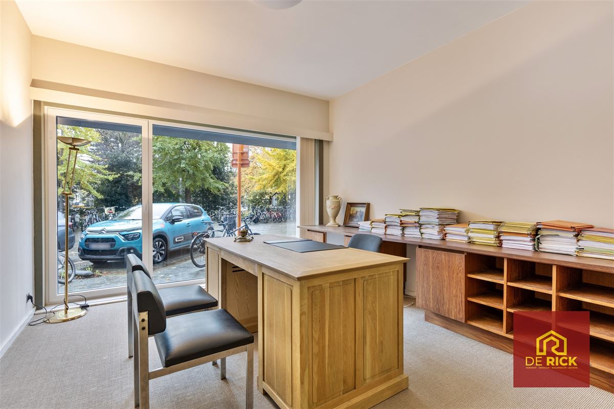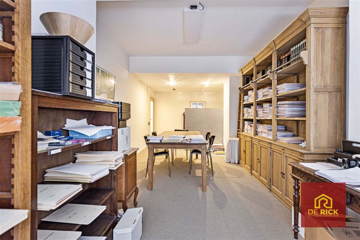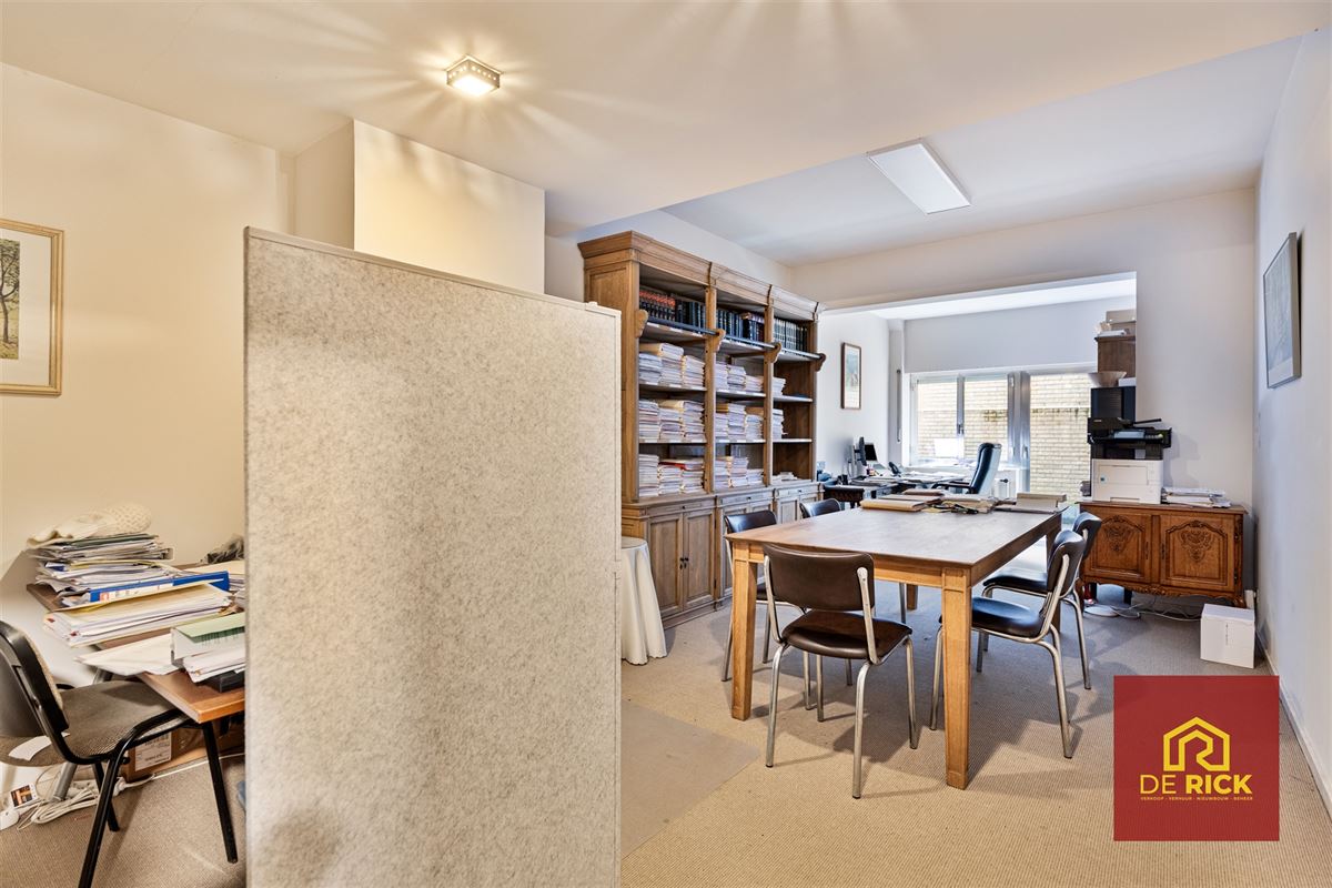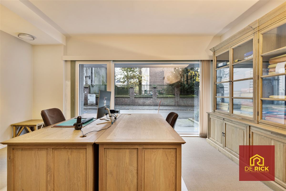Het kantoor met een oppervlakte van 167m², biedt een stijlvolle en praktische indeling met een afzonderlijke inkomhal, brede gangen en vijf ruime burelen.