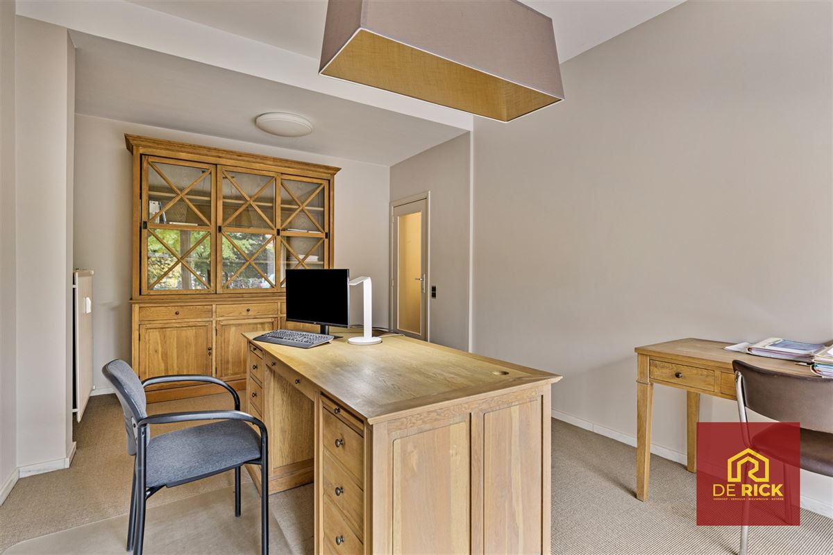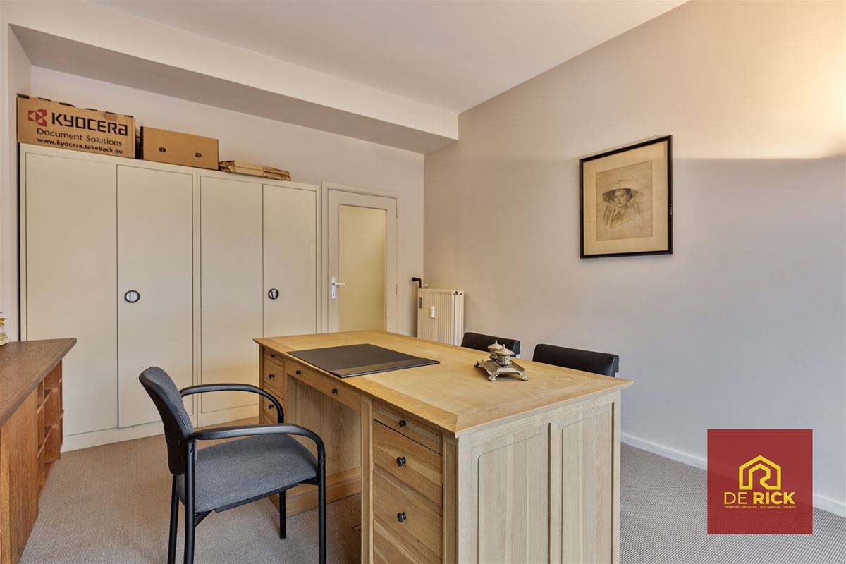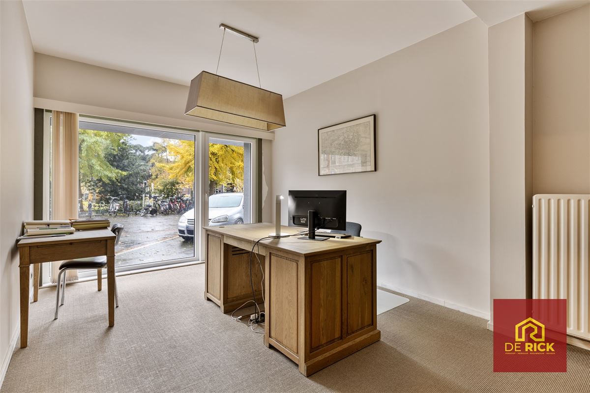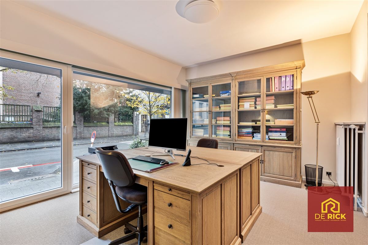 Het kantoor met een oppervlakte van 167m², biedt een stijlvolle en praktische indeling met een afzonderlijke inkomhal, brede gangen en vijf ruime burelen.