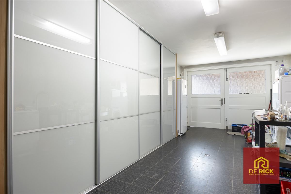 Het woongedeelte op het gelijkvloers omvat een ruime inkomhal, een charmante en lichtrijke leefruimte, een volledig ingerichte keuken met ontbijthoek, een eerste badkamer met inloopdouche en lavabo, een apart toilet, een inpandige garage en een praktische kelder.